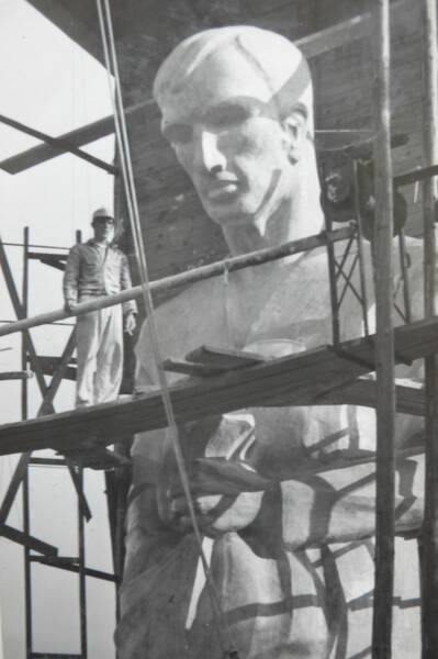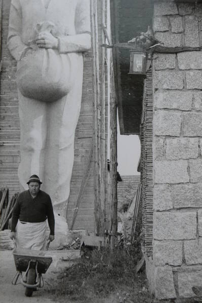 Während des Baus des Silos der landwirtschaftlichen Genossenschaft in Waidhofen/Thaya werden bereits Metallarmierungen mit Befestigungen bis in das Fundament eingebracht; die Figur selbst wird von Statikern berechnet und aufgrund der dem Künstler eigenen Skepsis zunächst „ausgelitert“. Im Garten der Liegenschaft Fuchssteinweg 16, Gmünd – als sich das Haus noch im Rohbau befindet, die Werkstatt aber bereits errichtet ist –, entsteht die Plastik in Originalgröße (12 m) aus Gips.